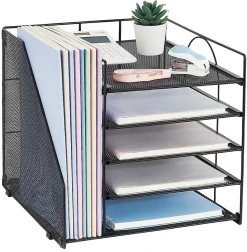 LEKETREE Desk Organizers and Accessories, 5-Tier Paper Letter Tray Organizer with File Holder